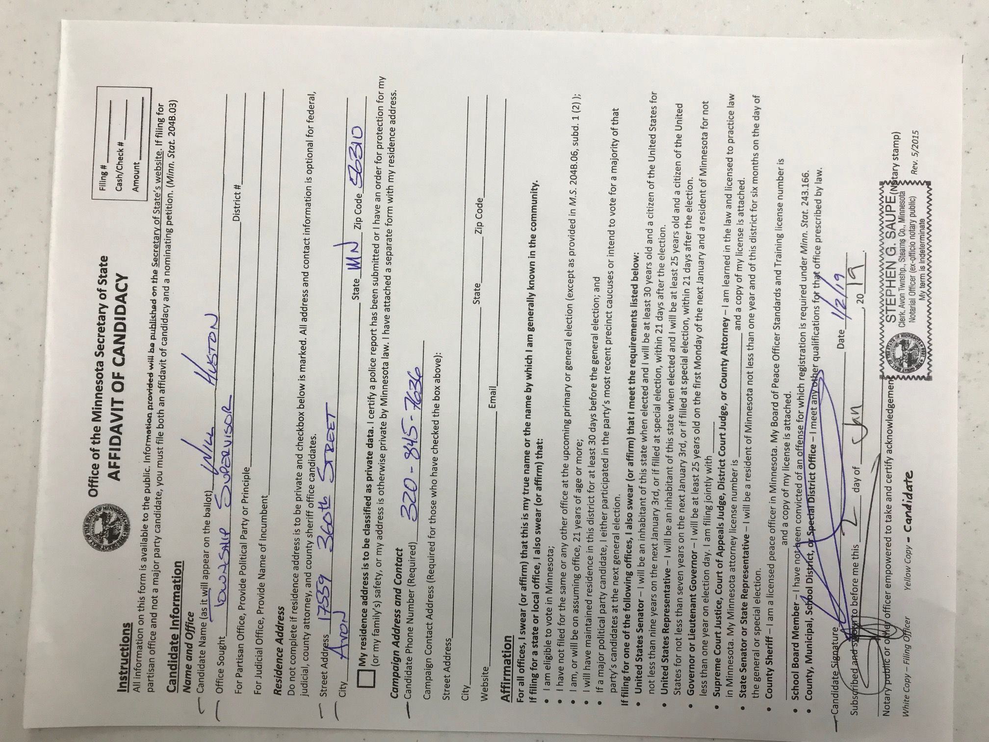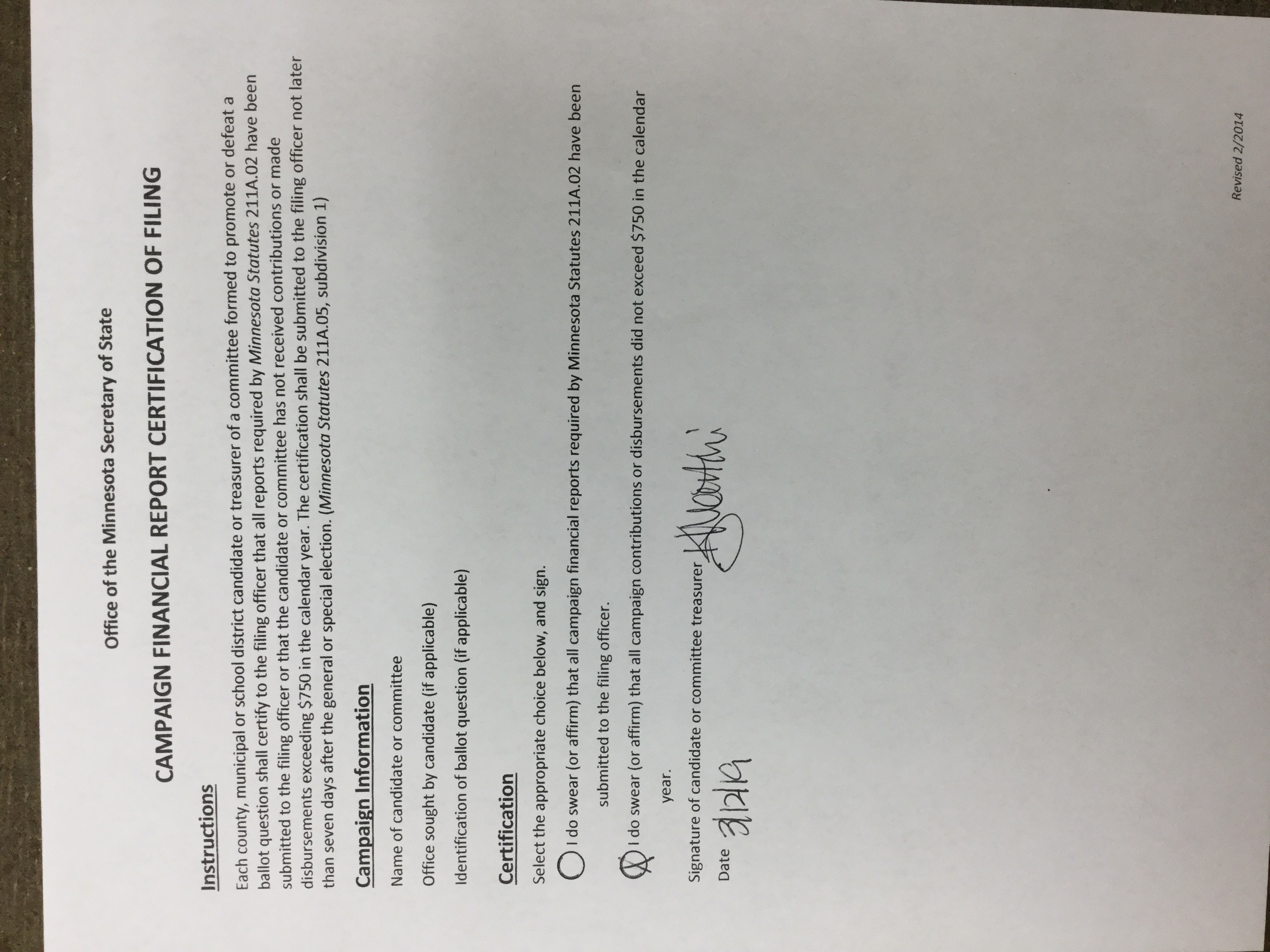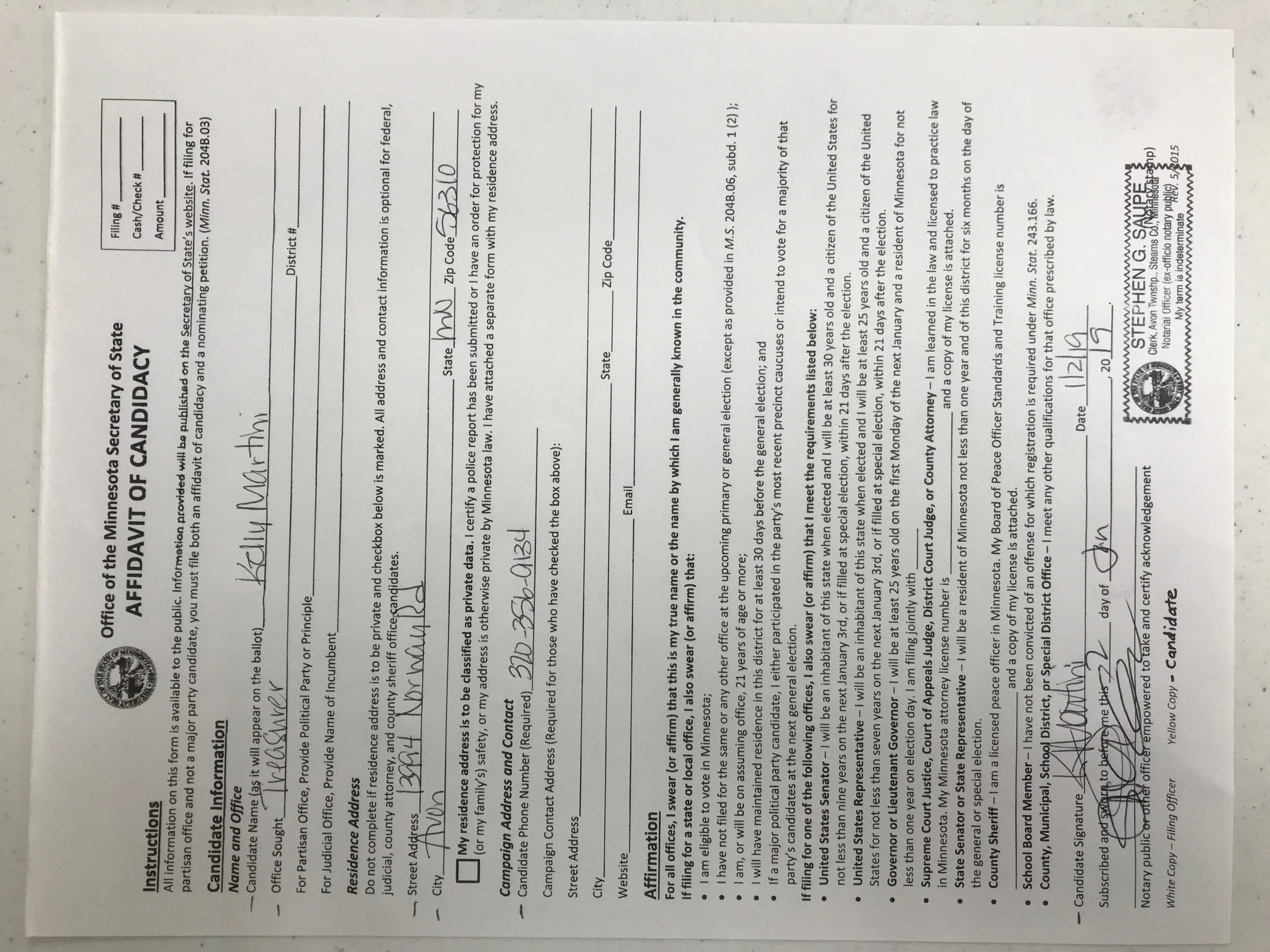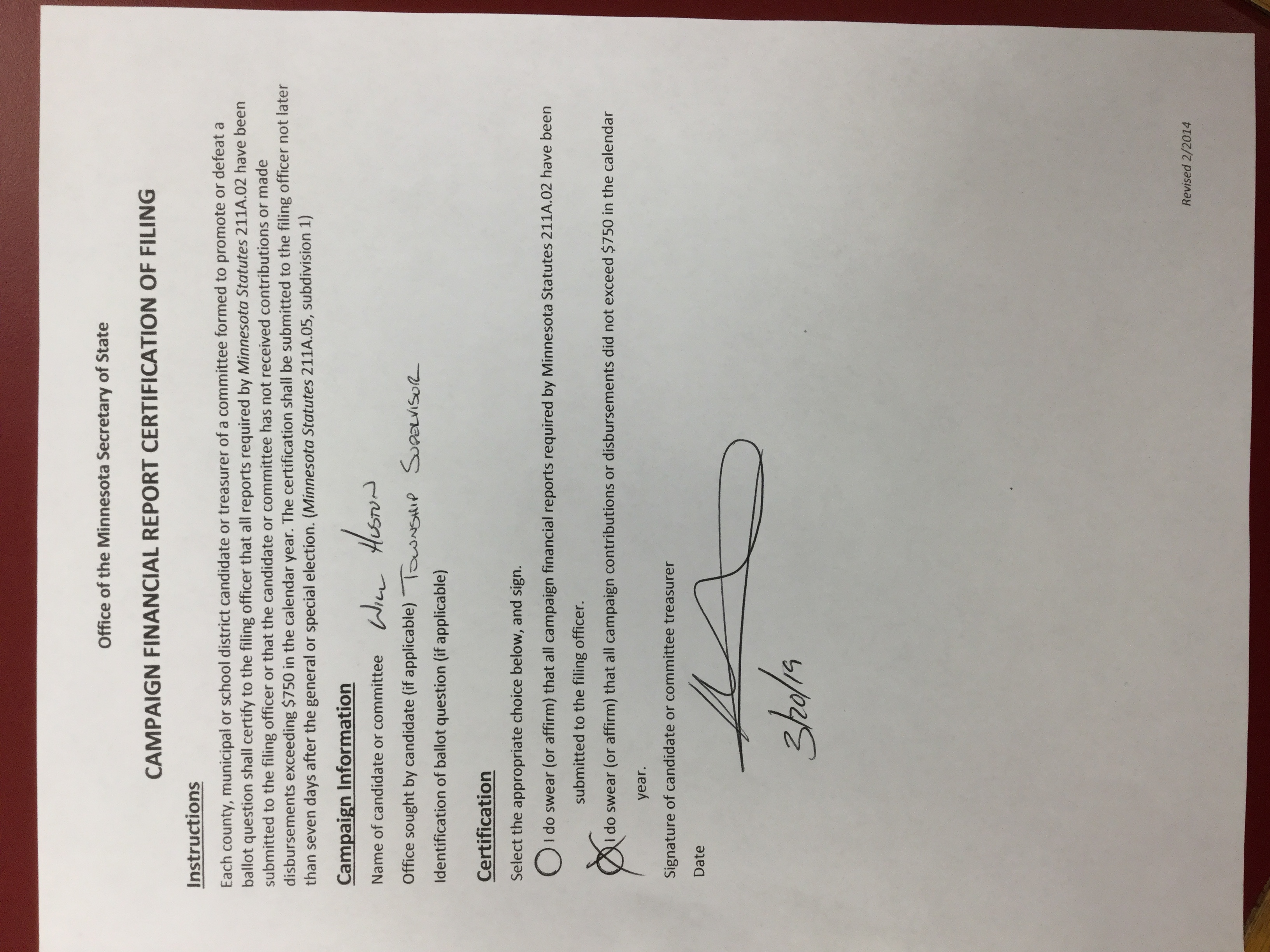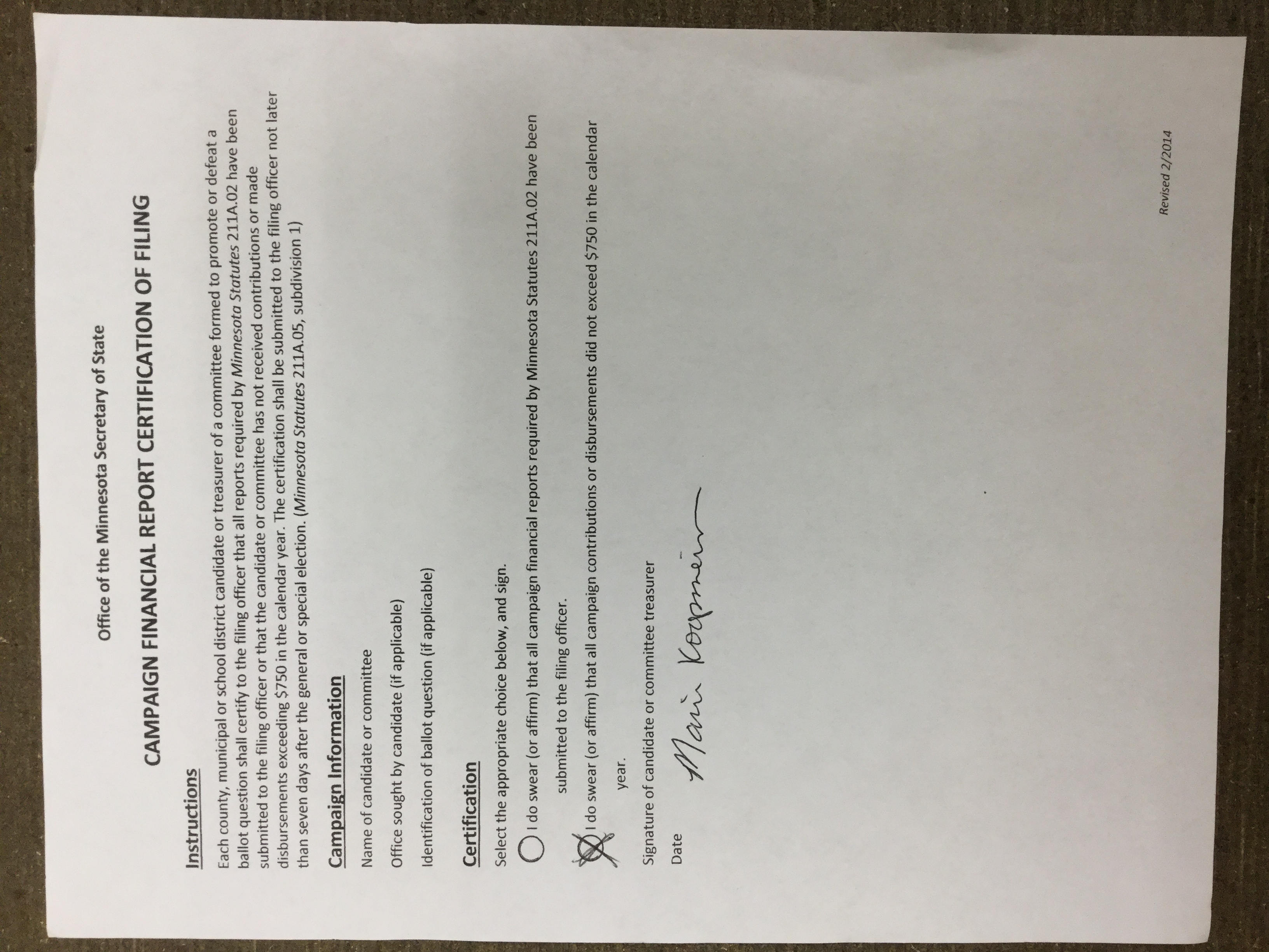 - Campaign Finance Forms: Will Huston, Marie Koopmeiners, Kelly Martini