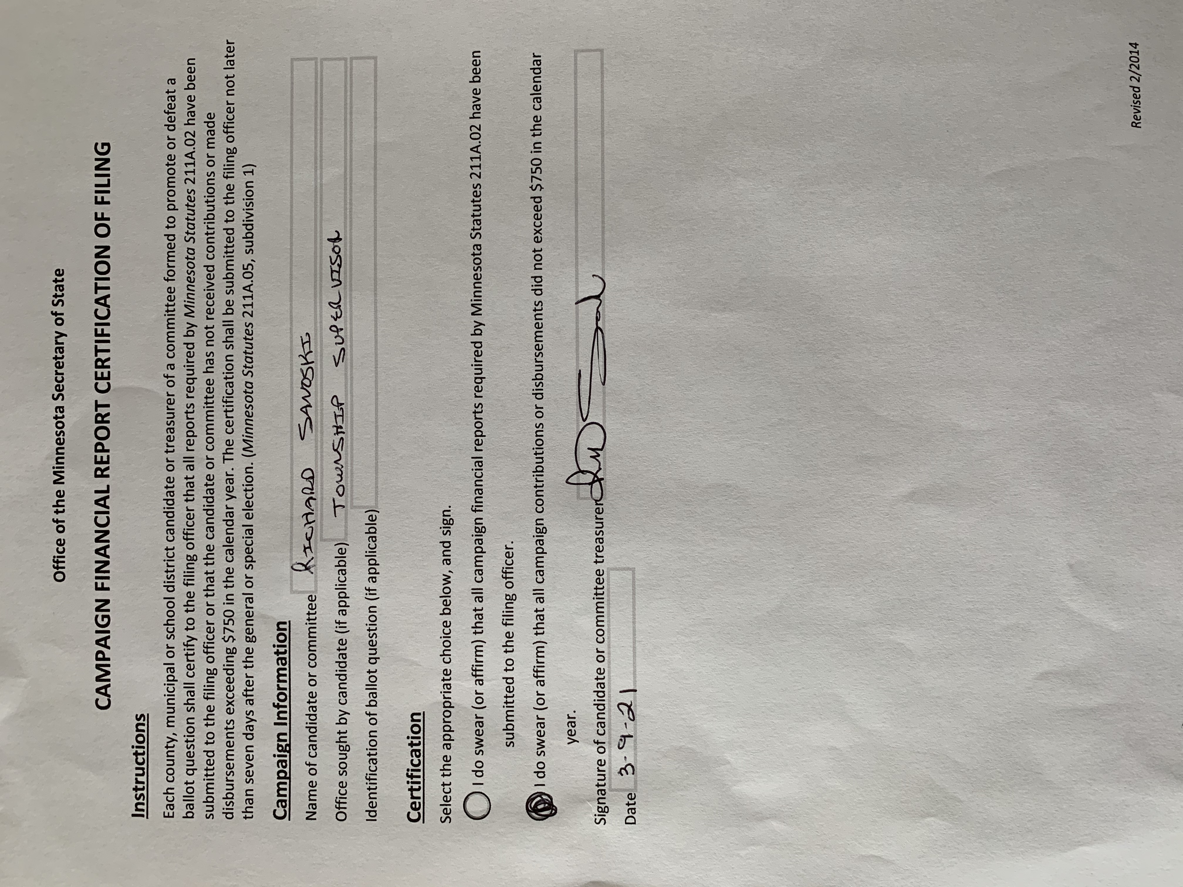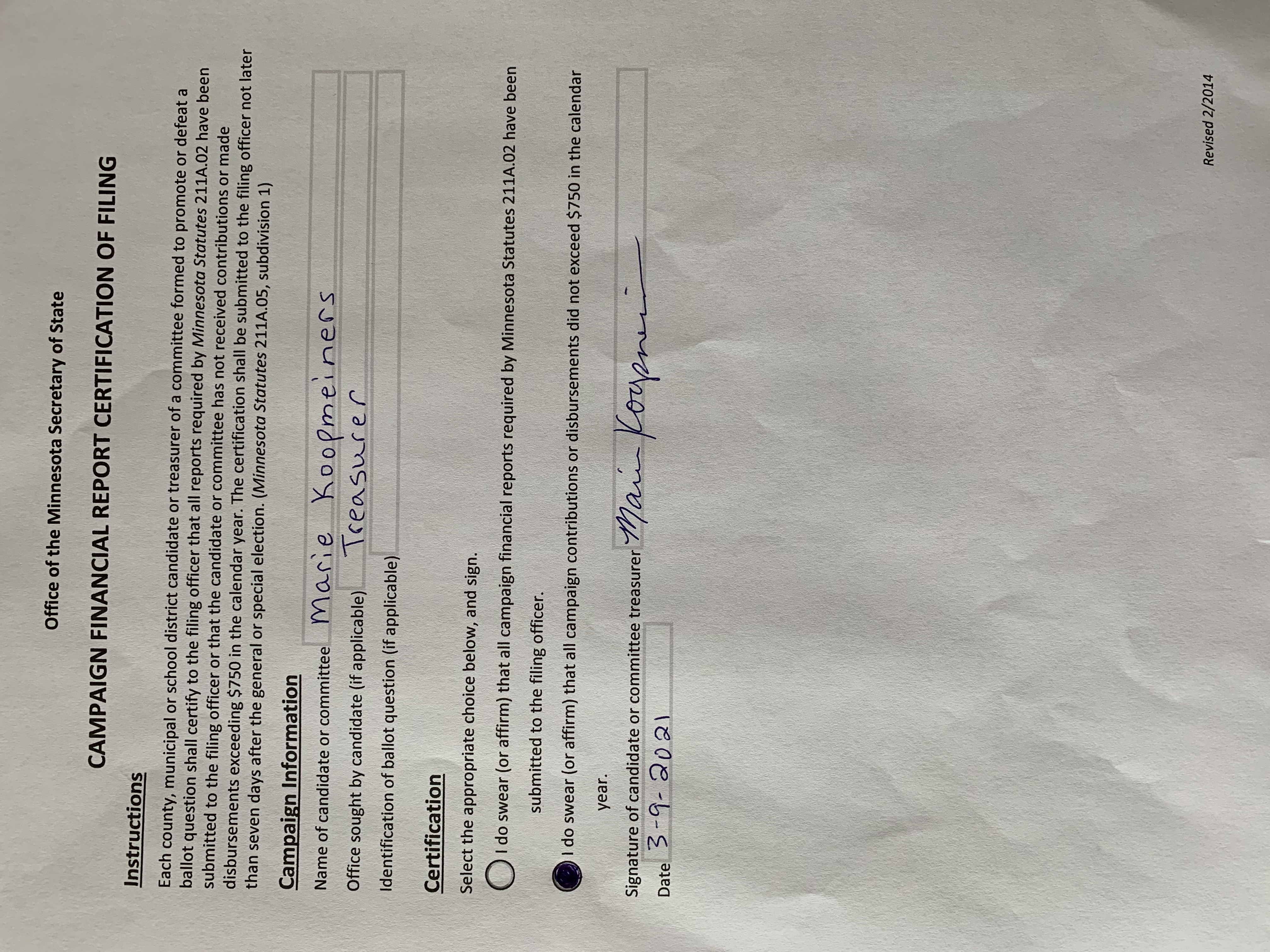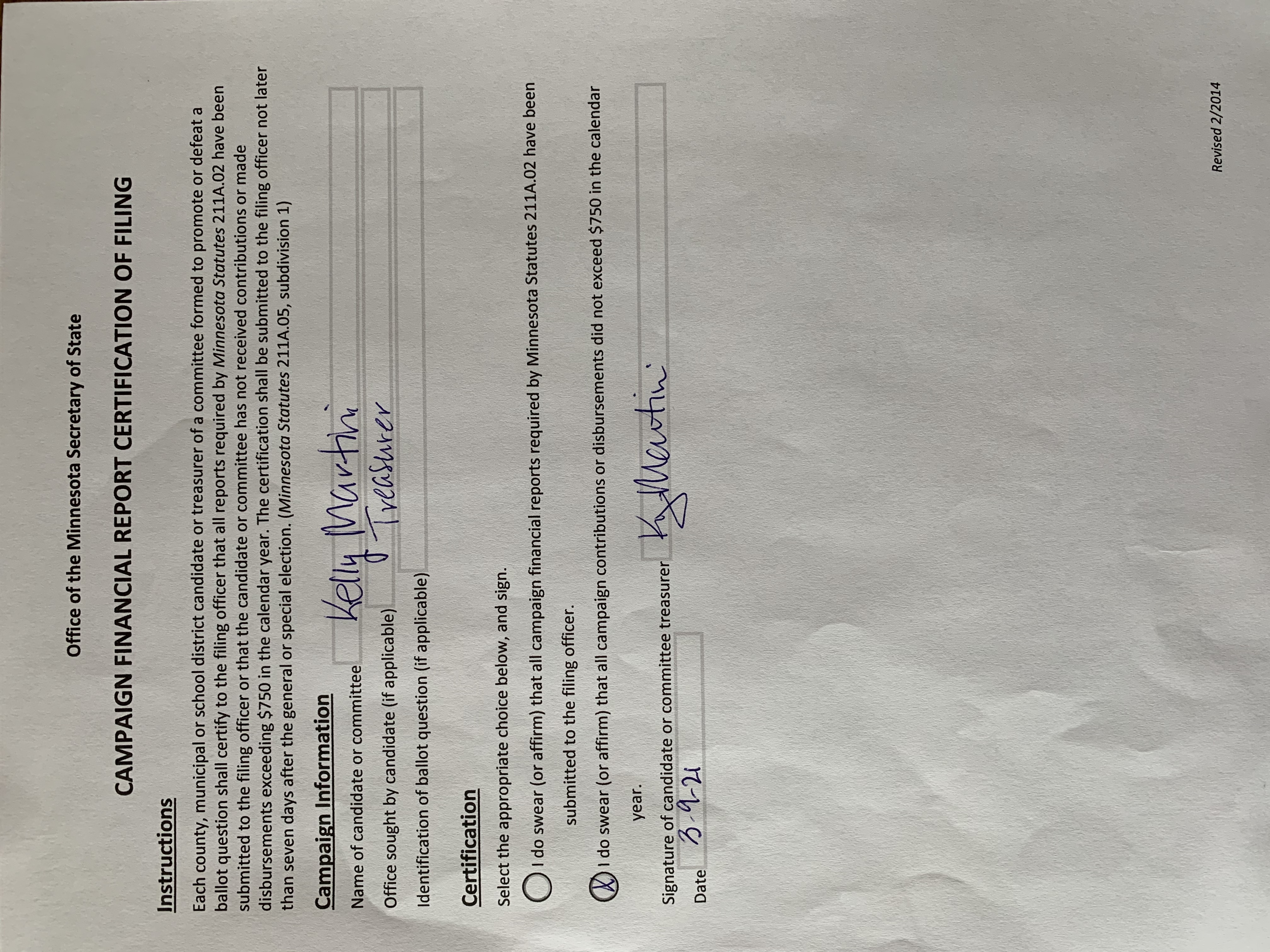 - Campaign Finance Forms – Kelly Martini, Marie Koopmeiners, and Rich Sanoski